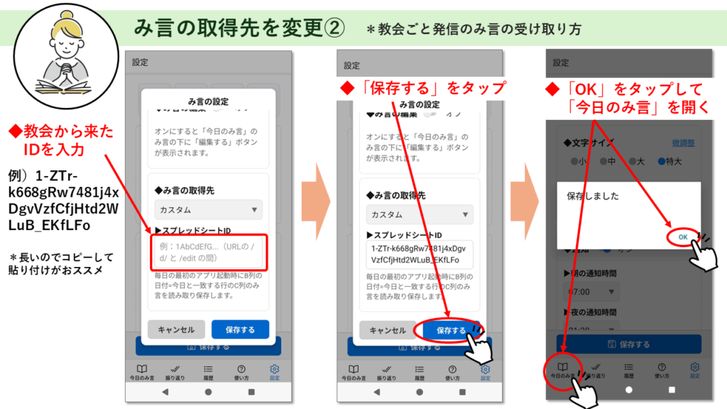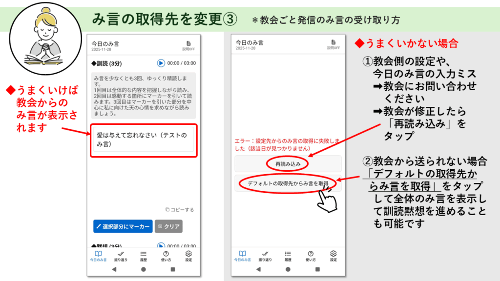 2-8 み言の取得先の変更 み言の取得先の変更――教会ごとのみ言の受け取り方 ※このページはピンチ(指2本で拡大・縮小)対応です。解説画像が見にくい場合は拡大してご覧ください。(今後、もう少しスマホで見やすいように修正する予定です。)